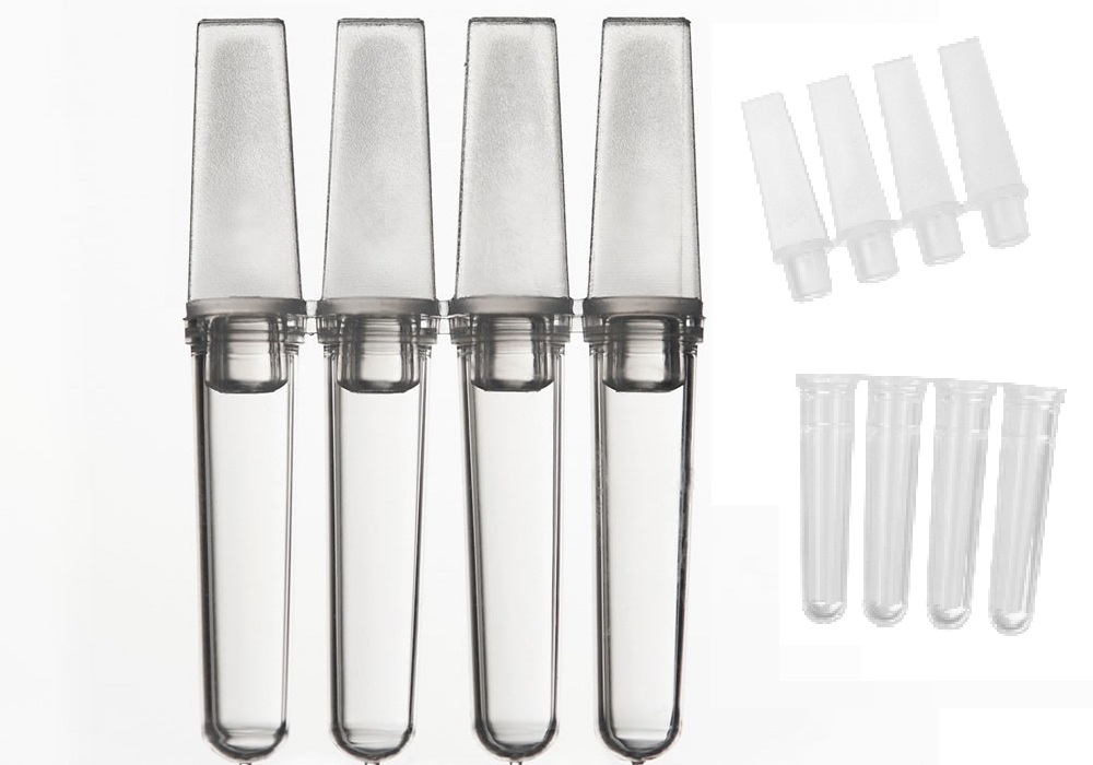 Cada tira é composta por 4 tubos  e 4 tampas.