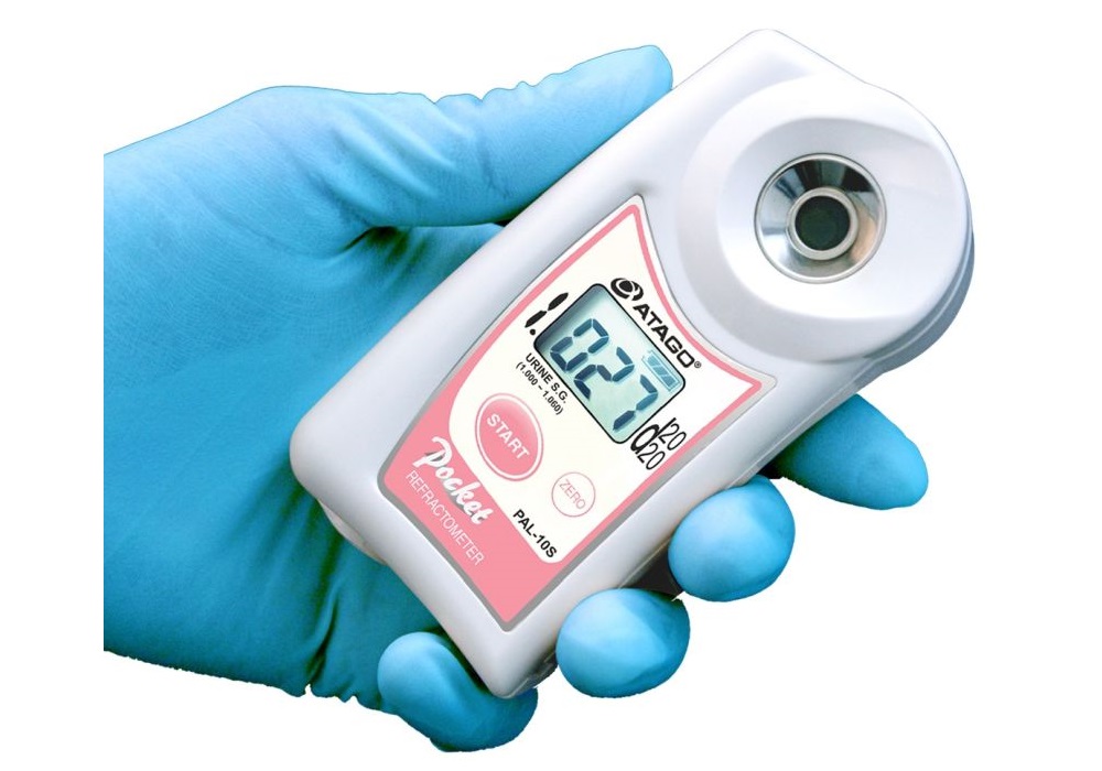 O PAL-10S é um hand-held digitais compactas refratômetro para medir SG urina Para operá-lo, basta colocar uma gota de urina no topo prisma e pressione o botão “Start” chave. Então, a urina SG valor será exibido no LCD instantaneamente.
