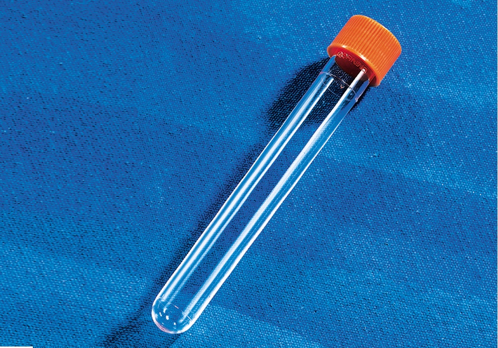 Tubo cultura 16x125mm poliestireno, com tratamento de cultura, estéril, pacote com 50 tubos, caixa com 500 unidades, código 430172, marca Corning